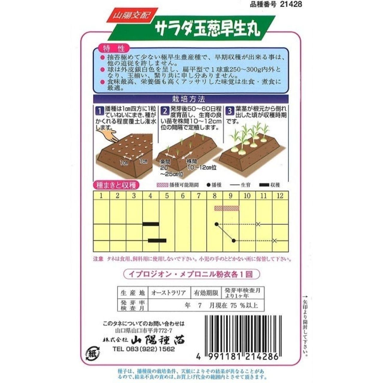 抽苔極めて少ない極早生豊産種で、早期収穫が出来る事は、他の追従を許しません。 球は外皮銀白色を呈し、扁平型で1球重250〜300g内外となり、球揃い、緊り共に申し分ありません。 食味最高、栄養価も高くアッサリした味覚は生食・煮食に最適。